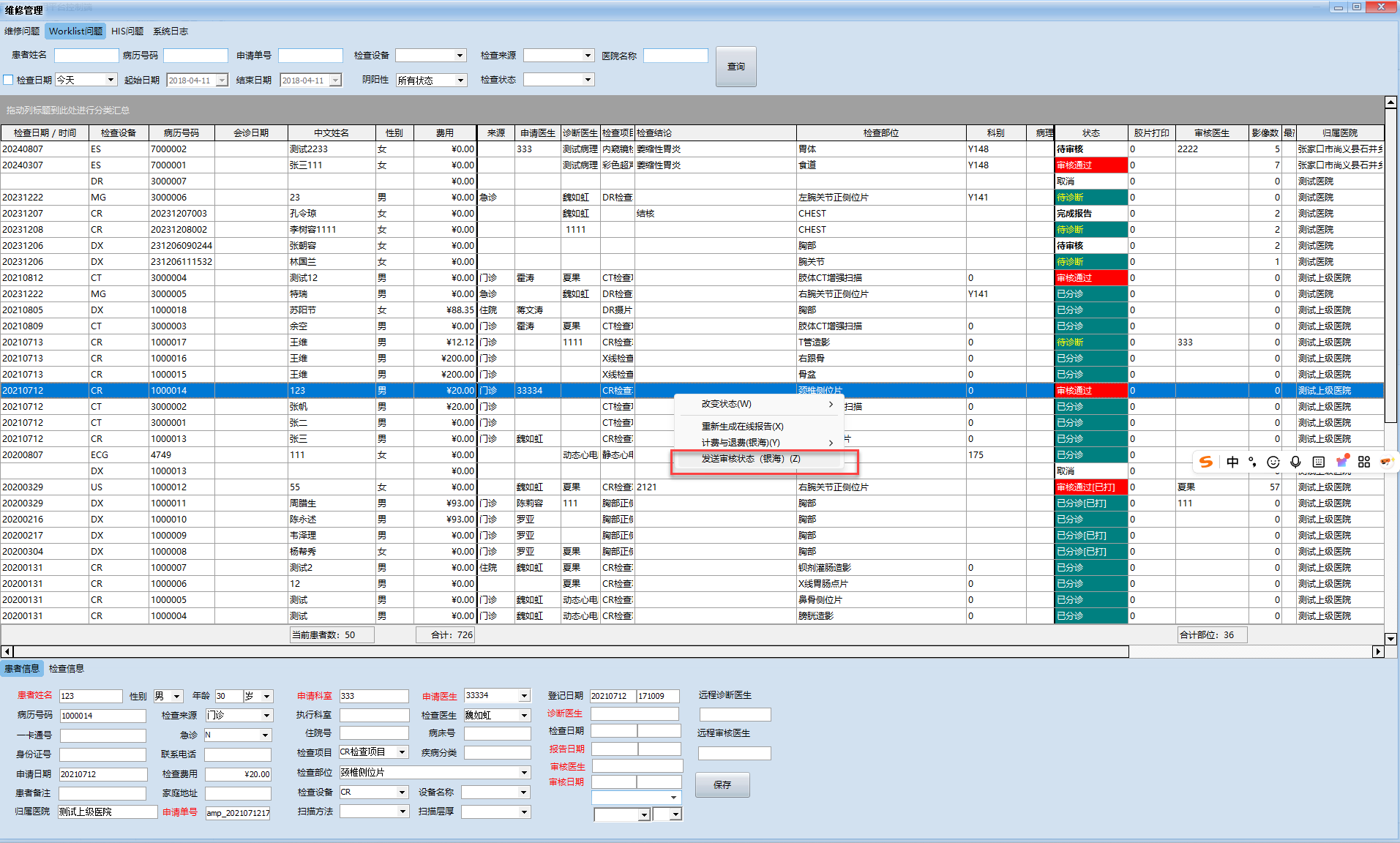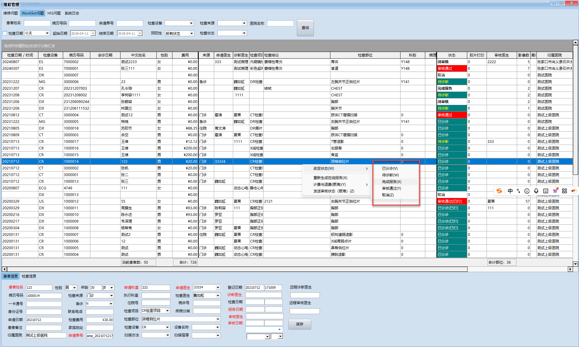 当医生提出需要修改患者的检查状态,包括取消患者检查,审核通过;涉及此类操作请看下图说明