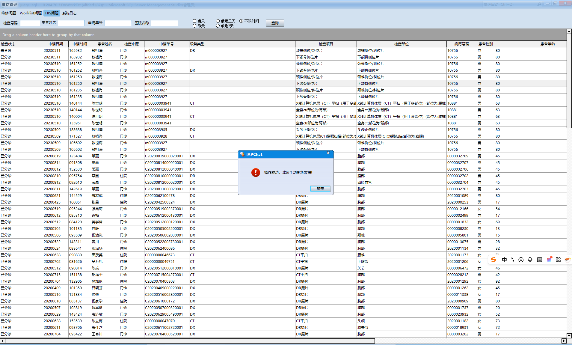 改变患者检查状态的方法(信息科专用)