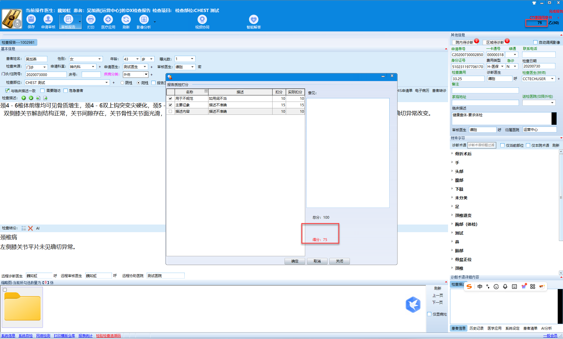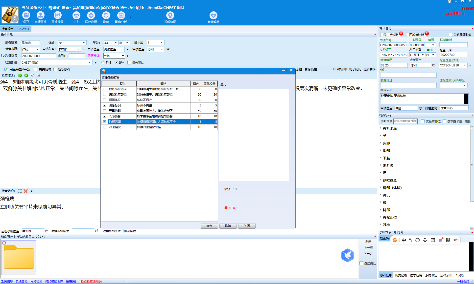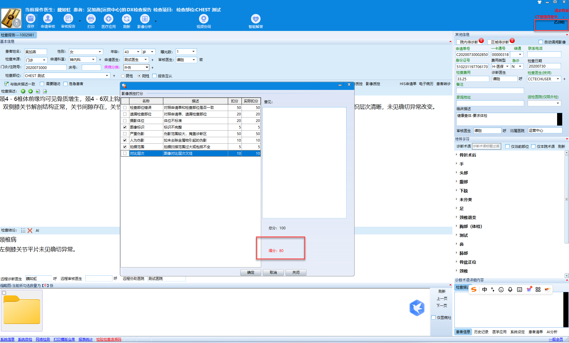 上级医生在书写报告的时候,必须要进行影像质控评分