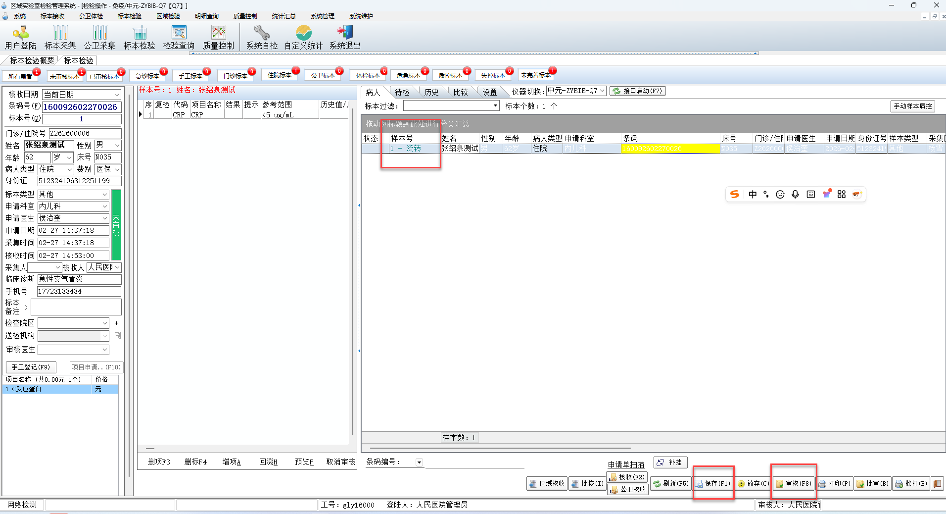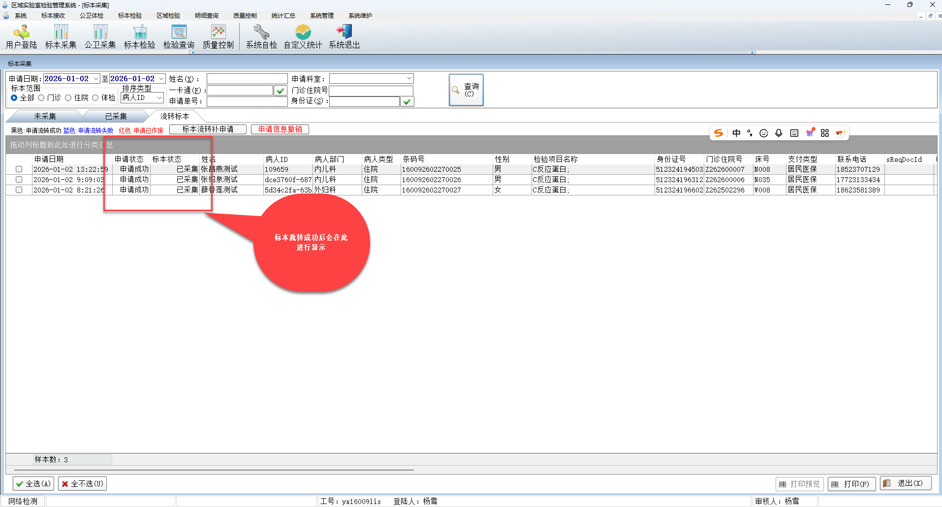 2 核收完毕后对报告进行保存和审核;如果是流转标本将会自动返回给基层医院