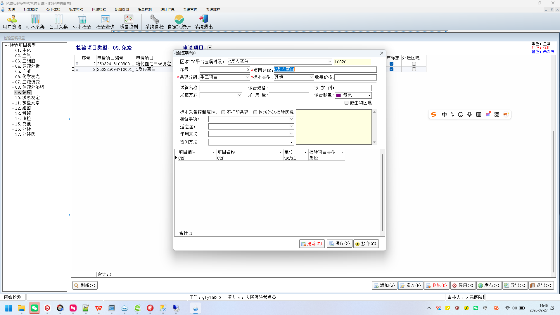 区域检验标本流转的上级医院(临检中心)配置设定说明