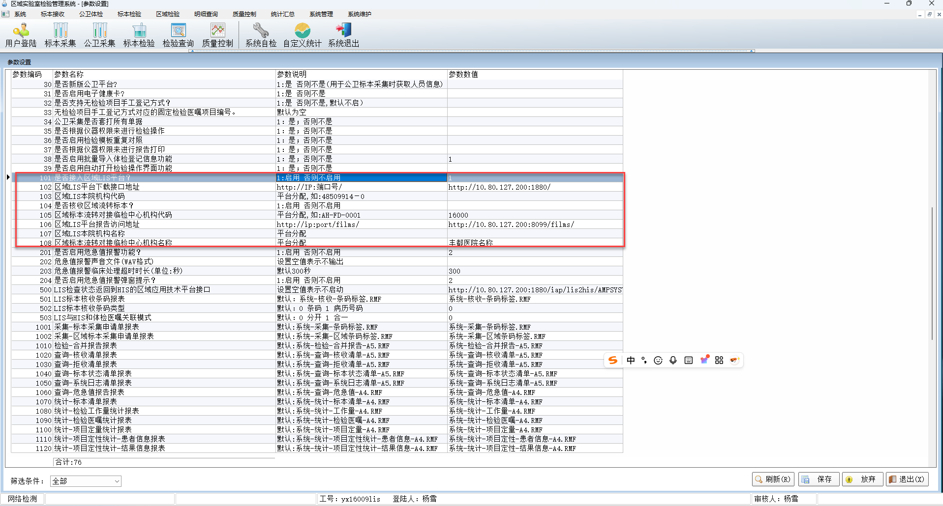 A 设定【是否接入区域LIS平台】参数 1