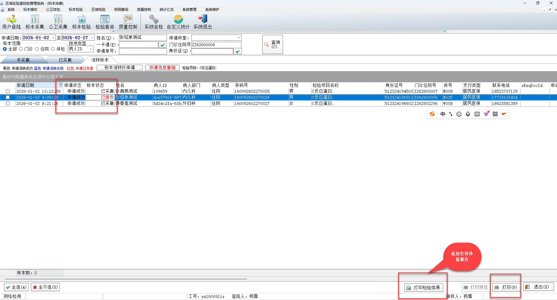 2 如果流转标本返回了报告,可以直接进行报告打印